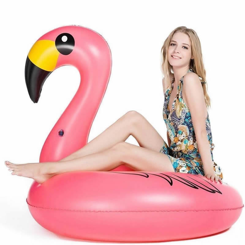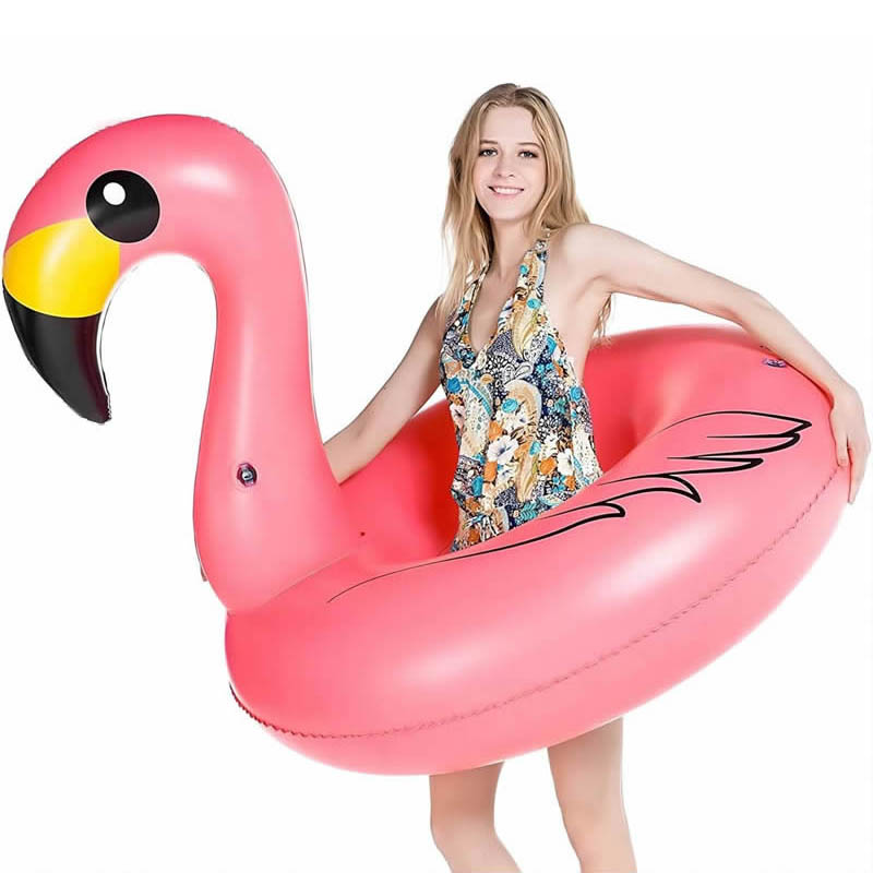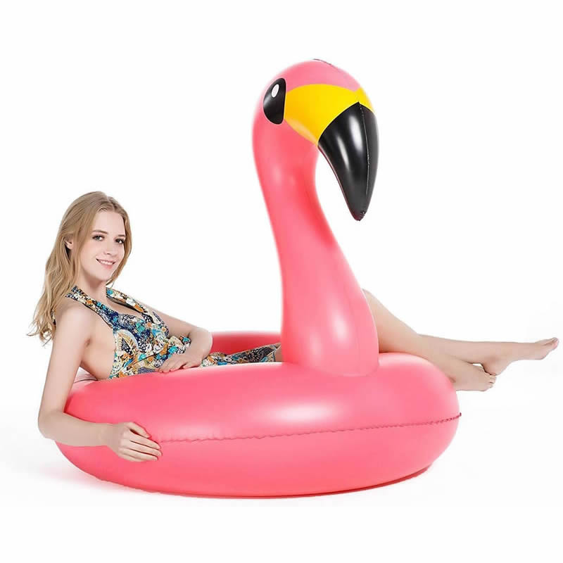 The classic flamingo design features a tall, elegant neck with a built-in handle/headrest for easy mounting and comfy support, wide wings for added stability, and bright pink coloring that stands out. Ideal for pool parties, beach days, sunbathing, or as eye-catching outdoor decor that sparks smiles and photo ops.
